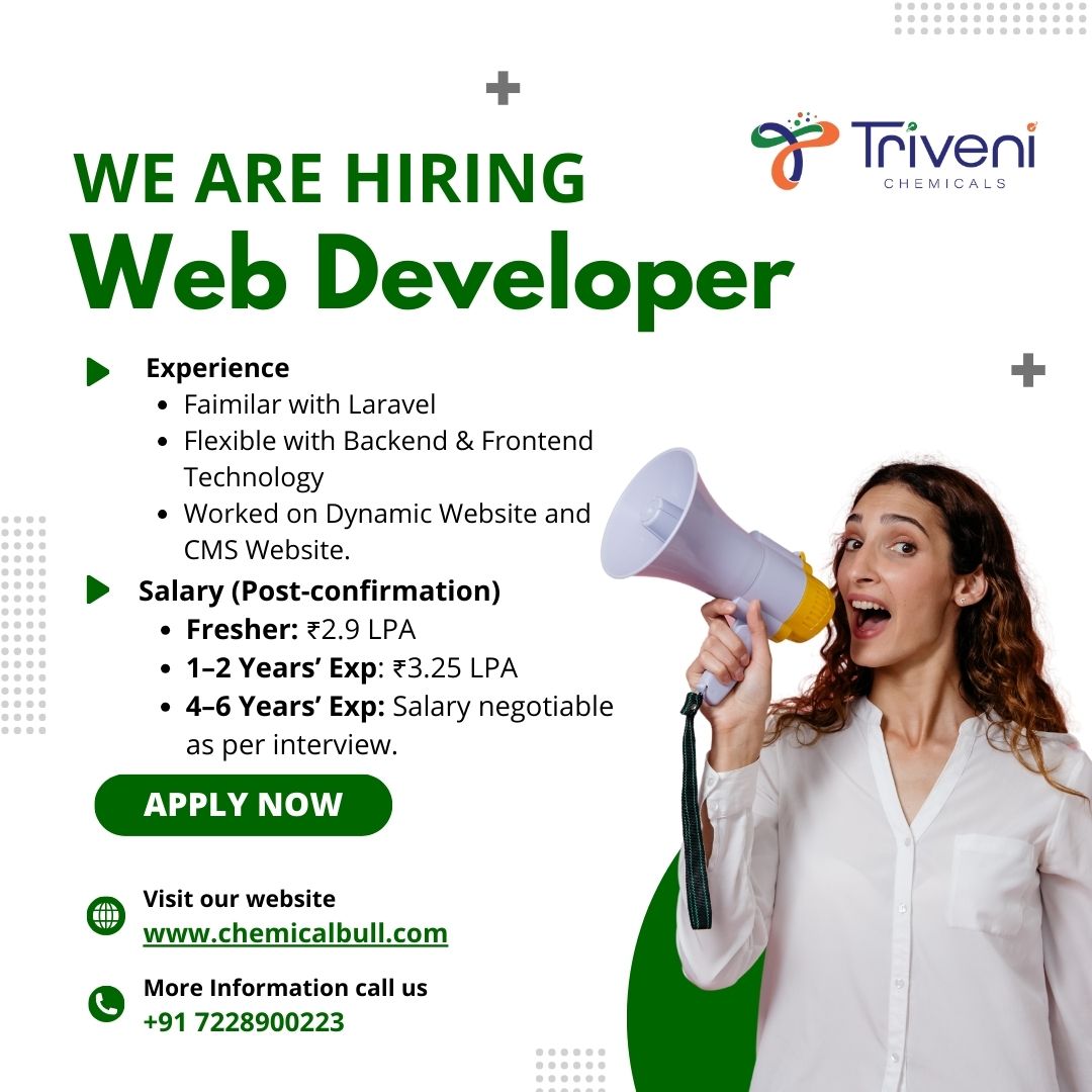 Triveni Chemicals in Vapi, Gujarat is looking for an experienced Web Developer to maintain and improve our company website and e-commerce platform for chemical products.