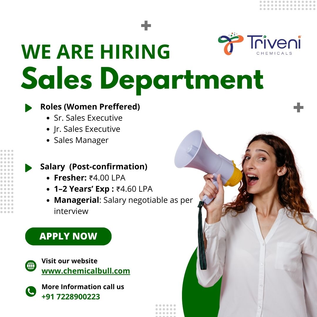 Triveni Chemicals in Vapi, Gujarat is seeking Data Entry and Data Management Operators to handle product, supplier, and sales information accurately.